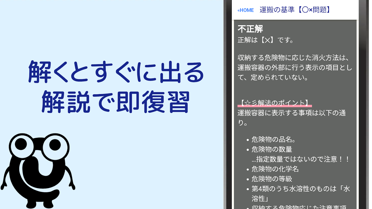 È un'applicazione di raccolta dei problemi per settore di merci pericolose Otsushi. È conveniente per memorizzare quando si va al lavoro oa scuola perché le spiegazioni vengono fornite ogni volta che si risolve ogni domanda in un formato di domande e risposte. Puoi usarlo secondo il tuo scopo perché è un problema pratico e di apprendimento puntuale.