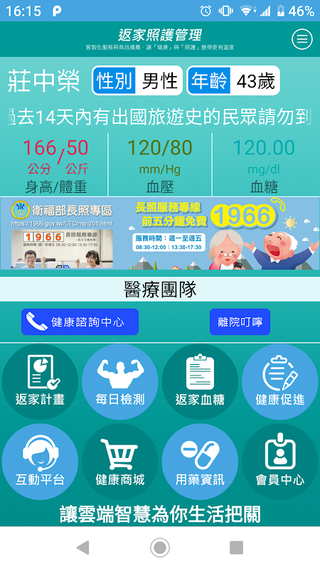 本APP將透過線上照護管理功能來讓醫院個管師追蹤返家後的情況,並給予適當的建議與治療推薦,也可讓個案病患家屬得知其是否有完整進行每日療程。