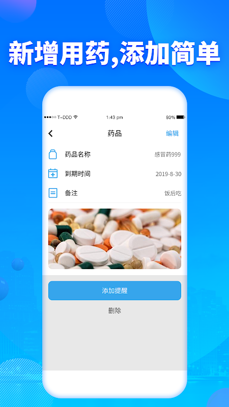 2.药品管理,可以管理您的药物,以便您知道药品的使用方法,有效期。