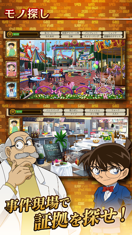 仮想世界でコナンや少年探偵団など、名探偵コナンに登場するおなじみのキャラクターと一緒に、捜査と推理をして難事件を解決しよう!オリジナルキャラクターも多数登場!