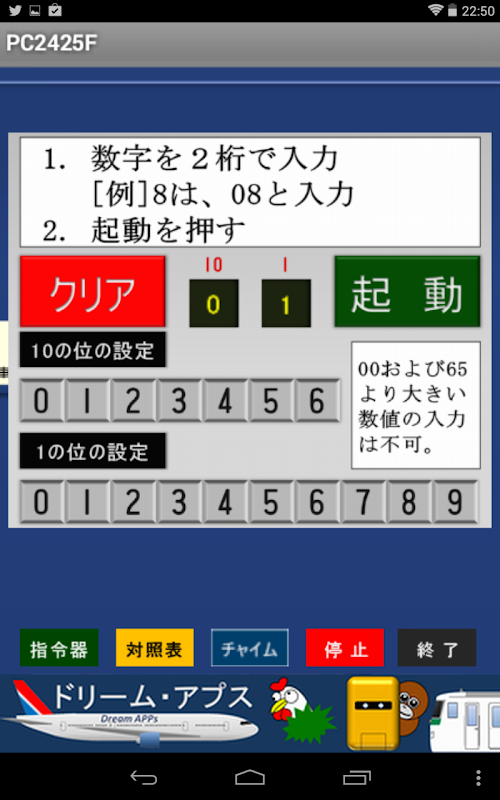 駅名対照表で列車種別と行先を確認して、それに対応する番号を指令器に入力します。