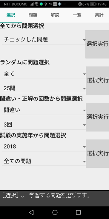 2.[選択]の「ランダムに問題選択」は、「チェックした問題」から選べるようになりました。