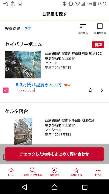 過去に見た物件をさかのぼることが出来るので、物件検索の手間が大きく省けます。