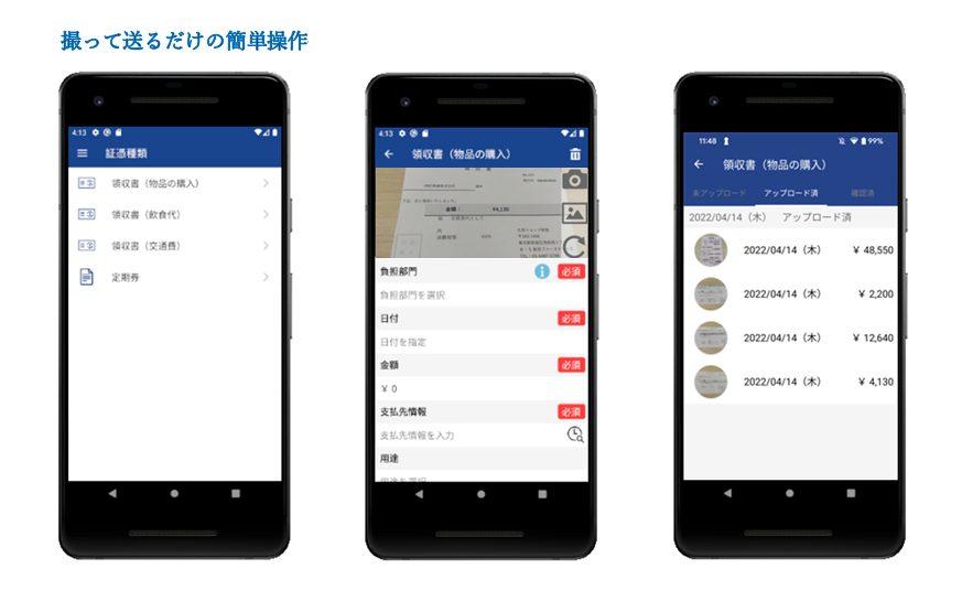 Puoi prendere una ricevuta o una ricevuta con il tuo smartphone e inviarla come dati immagine da questa app. Puoi inviare facilmente una ricevuta in qualsiasi momento mentre sei in movimento.