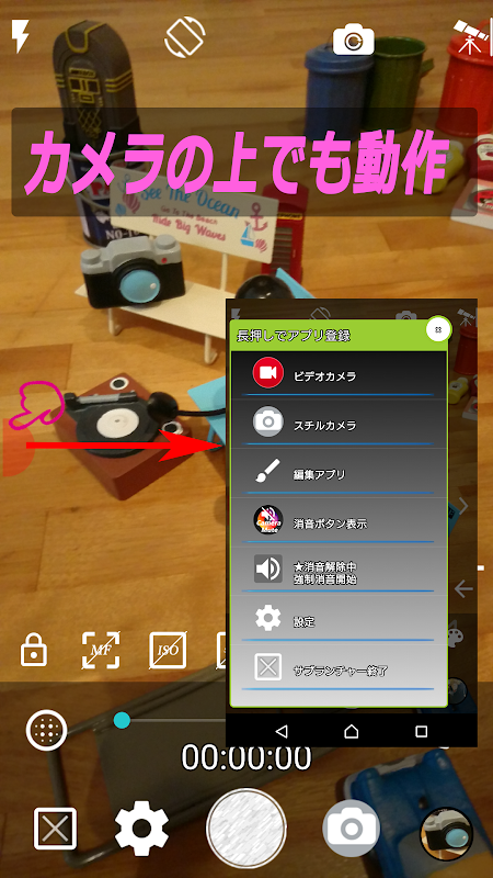 標準カメラはシャッター音が出るものだと思ってませんか?標準カメラやビデオカメラだけを無音化します。サブランチャーとしてアプリの上でも動作することも出来ます。
