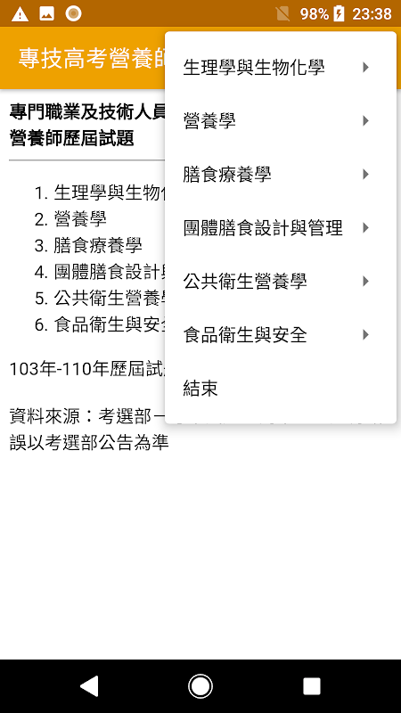 專技高考營養師 https://play.google.com/store/apps/details?id=tw.idv.tsaimh.ptdietitian