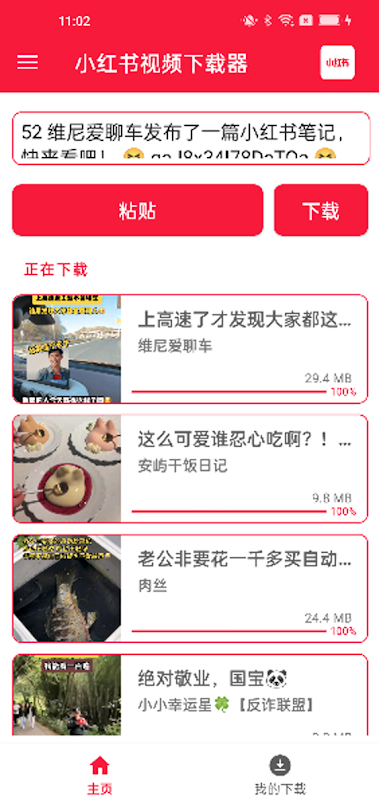 - Apri l'app Xiaohongshu Video Downloader, tocca il pulsante Incolla, quindi tocca il pulsante Scarica.