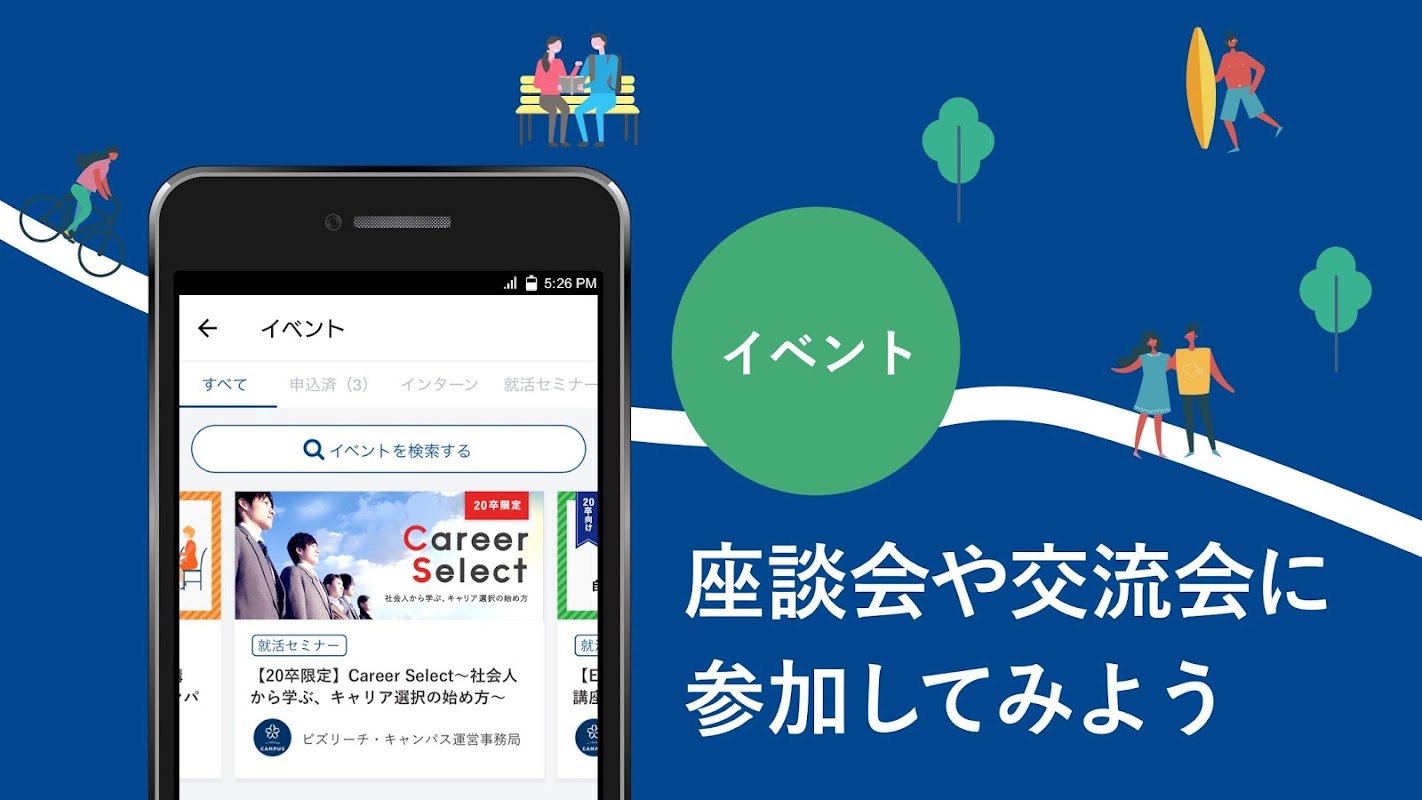 Puoi candidarti per eventi organizzati dall'ufficio di gestione di Bizreach Campus.