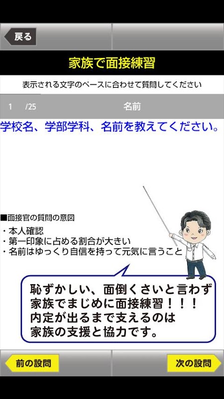 面接上達の極意は羞恥心をなくすことです。家族との面接練習が一番効果的です。