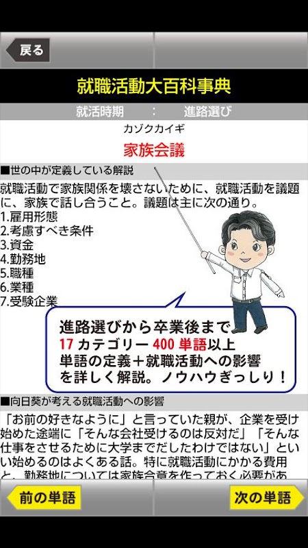 単語の定義だけでなく、就職活動への影響まで詳しく指導解説しています。