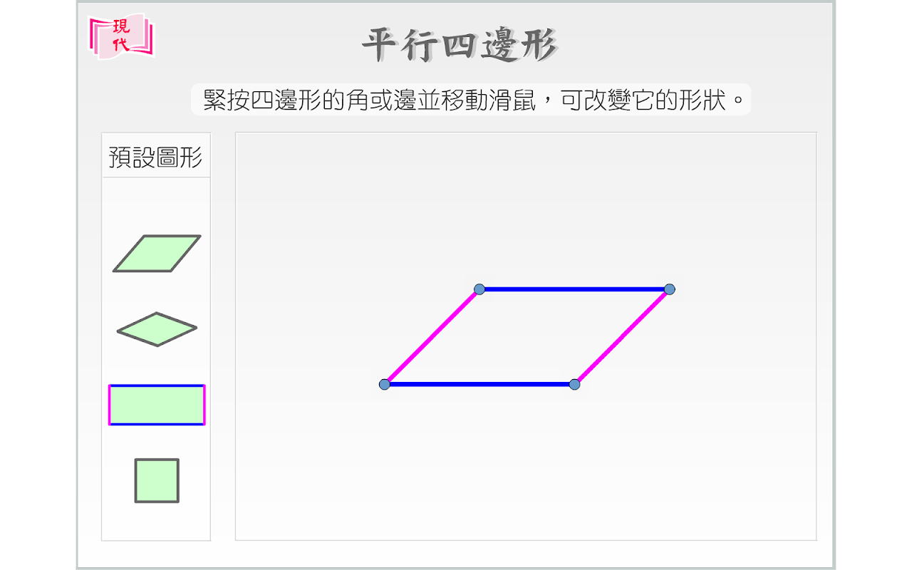 Studenti attraverso tocco delle dita cambiano la forma quadrilatera preimpostata, in modo che gli studenti a capire le proprietà di un parallelogramma.