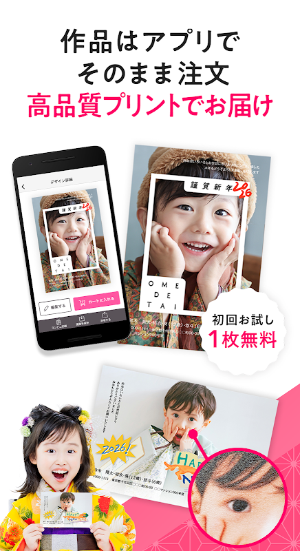 Crea disegni per biglietti di Capodanno, cartoline di Capodanno e cartoline di lutto sul tuo smartphone! Stampare gli indirizzi per le cartoline di Capodanno è facile! App per biglietti di Capodanno 2026 in cui puoi creare biglietti di Capodanno, progettare cartoline e stamparli a casa