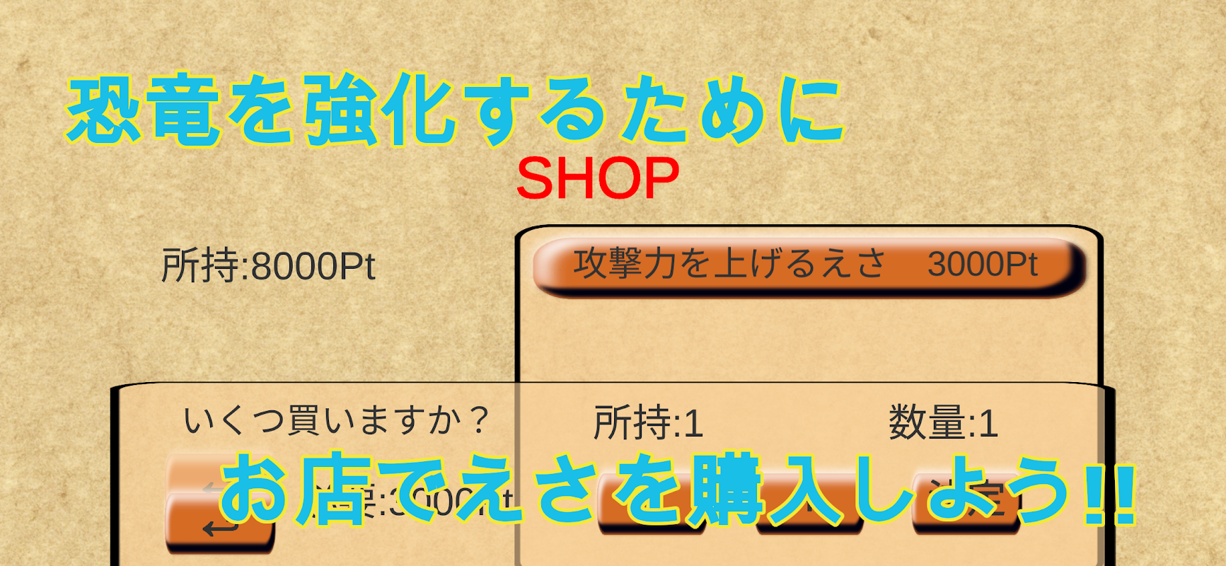 2. Vai al negozio e acquista oggetti per rafforzare i tuoi dinosauri in cambio di oggetti di gioco.