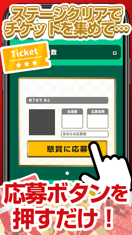 チケットを溜めて応募ボタンを押すだけで懸賞に参加できます!