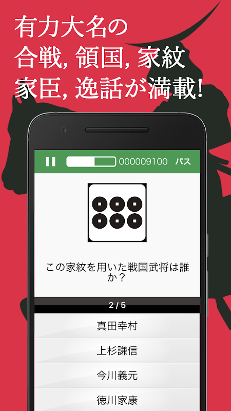 足軽、侍大将、大名、天下統一の4つの難易度の戦国クイズに「いざ、出陣!」