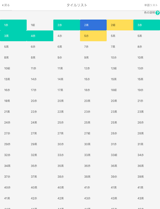 Abbiamo preparato una lista di tessere che colora in base alle parole che memorizzi. Puoi vedere il grado di realizzazione a colpo d'occhio.