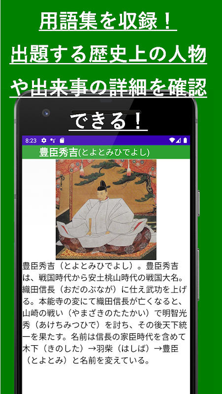 È un'applicazione con cui puoi imparare la storia giapponese in un formato a quiz.