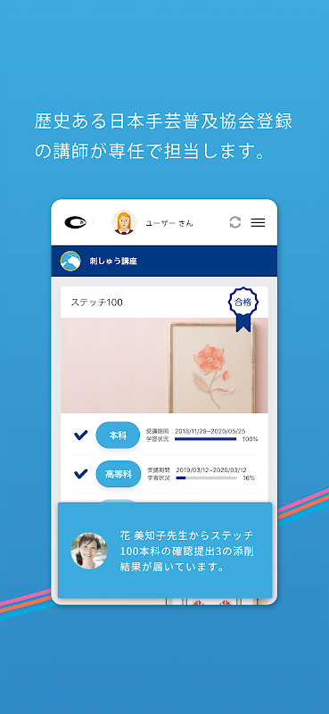Questo è un corso per corrispondenza in cui puoi imparare dalle basi del "ricamo" e del "lavoro a maglia" per ottenere abilitazioni all'insegnamento sul tuo smartphone.