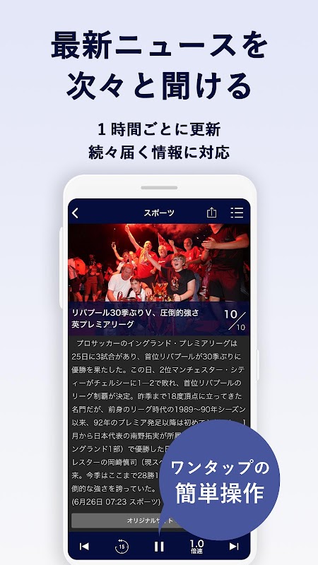 ◆速報性が大きな特長で、ニュースは1時間ごとに自動更新。1タップで簡単に聞けます。