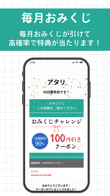❷Funzione Omikuji: puoi disegnare un Omikuji che ti regalerà un fantastico coupon una volta al mese.