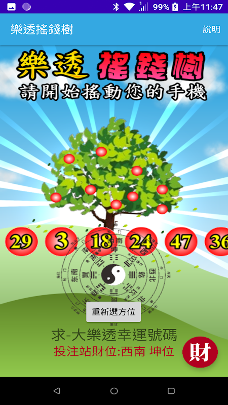 Scuotere il telefono, usando l'albero dei soldi della lotteria scuotere il tuo numero fortunato, a destra