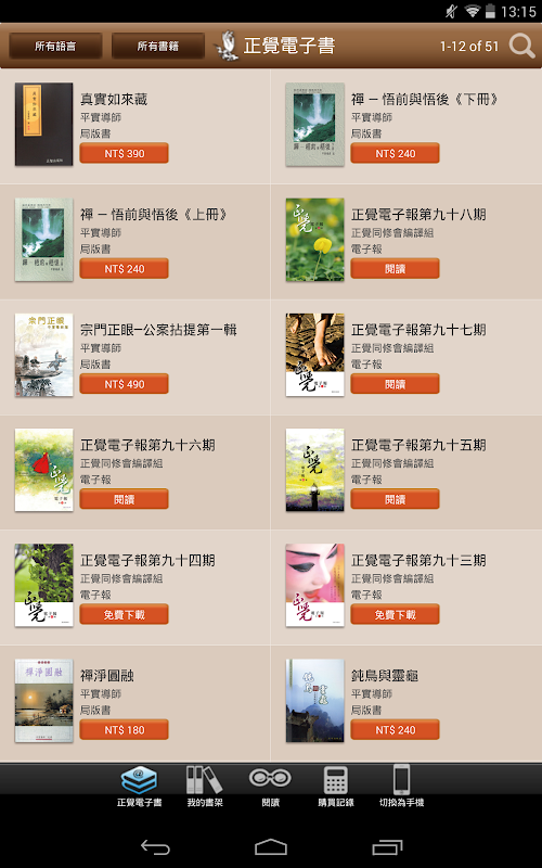 *新增帳號登出功能:於正覺電子書頁面點擊下方「正覺電子書」按鈕即可登出帳號。