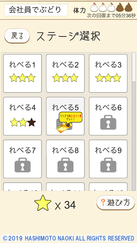 より少ない操作回数(持ち上げる×落とす)でクリアできると最大星3個の高評価がつきます。