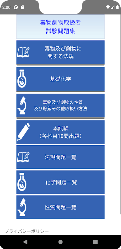 毒物劇物試験問題集、毒物劇物試験対策アプリの決定版!本番形式まで厳選した問題240問。
