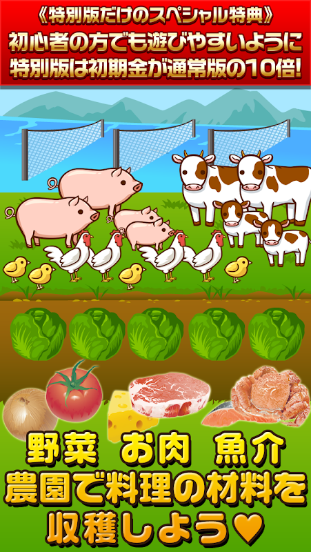 1.農園で料理の食材を収穫する(小麦とか卵とかエビとか)