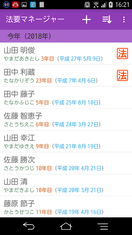 ・命日を登録することで、その年の法要がある方が一目でわかります。