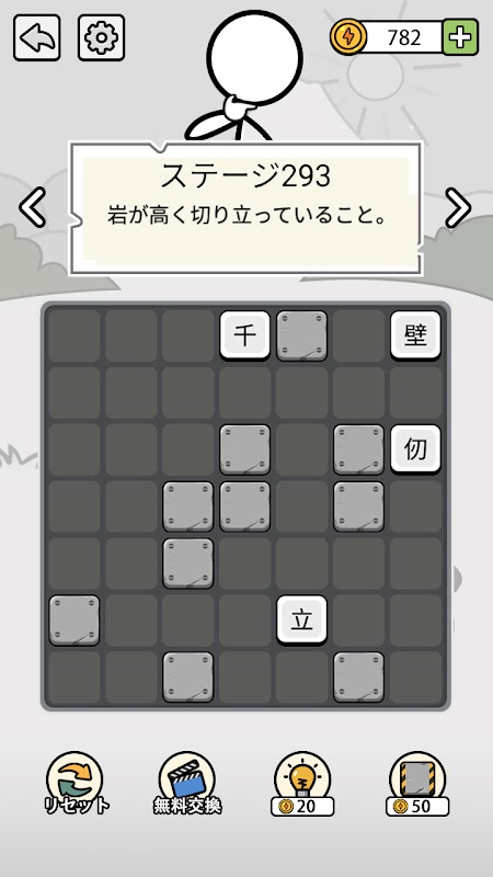 リセット:このアイテムを使うことで、全ての漢字ブロックは最初の位置に戻ります。