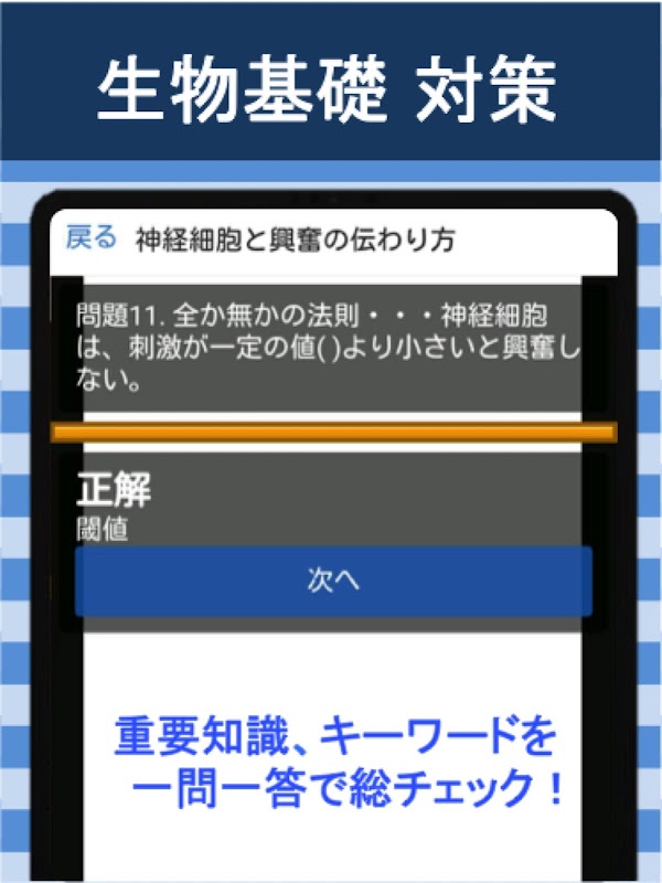 高校 「生物基礎」に関する大量の知識をアプリで克服!授業の復習用からセンター試験や大学受験の合格に必要な必須知識を厳選!知識の総チェック&弱点克服に最適!