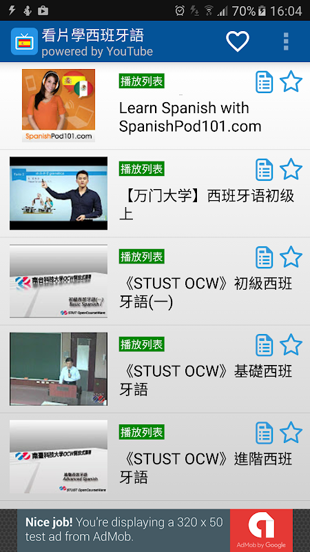 看片學西班牙語APP搜集整理YouTube上西班牙語相關教學影片之影片連結,讓用戶能方便觀賞學習YouTube上的西班牙語教學節目。