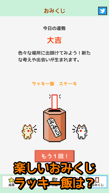 Disegniamo una fortuna e controlliamo la fortuna e il pasto fortunato di oggi. Mangiamo cibo delizioso con i soldi risparmiati smettendo di bere!
