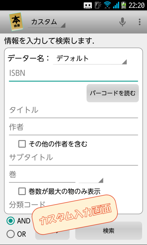 また、端末のカメラを使ったバーコードリーダーを装備しており、本の裏表紙に印刷されているバーコードを読み取って検索することもできます。