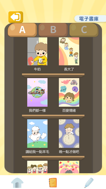 ∎ Genitori e insegnanti possono leggere e-book in biblioteca attraverso il programma e possono giocare a semplici giochi legati ai libri per aumentare l'interesse dei bambini per la lettura, migliorare le loro capacità di ascolto e comprensione e promuovere lo sviluppo del vocabolario.