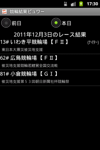 Si tratta di un'applicazione per visualizzare l'elenco dei risultati di gara di ciclismo.