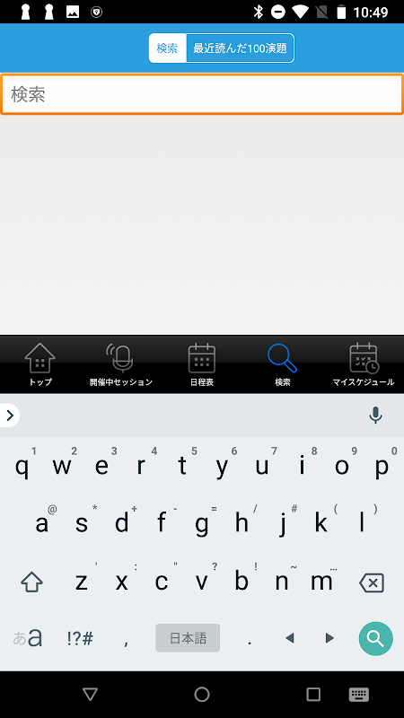 会期中、その時刻に発表されているセッションが一覧表示します。