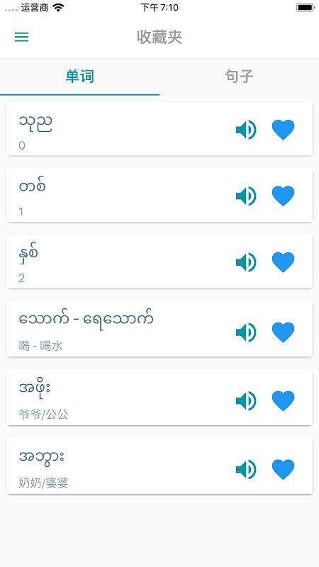 1、每个单词都是缅甸真人配音,故意降低语速,让初学者听的更清楚。