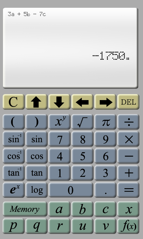 ポケコン風関数電卓です。複数の定数と関数がユーザー定義可能です。数式の履歴機能、簡易なグラフ表示機能もあり。