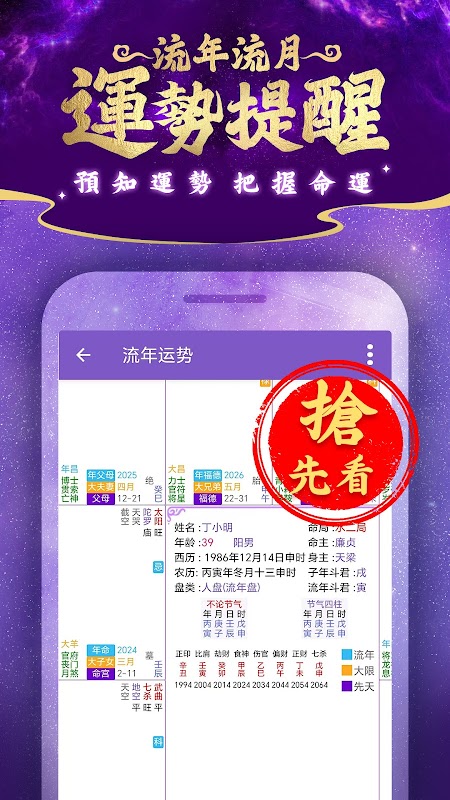 3. Calcola il grafico della fortuna personale dagli otto caratteri della data di nascita e guarda l'analisi dettagliata della predizione del futuro dei palazzi e dei mesi fugaci della predizione del futuro, e l'accuratezza della predizione del futuro è maggiore!