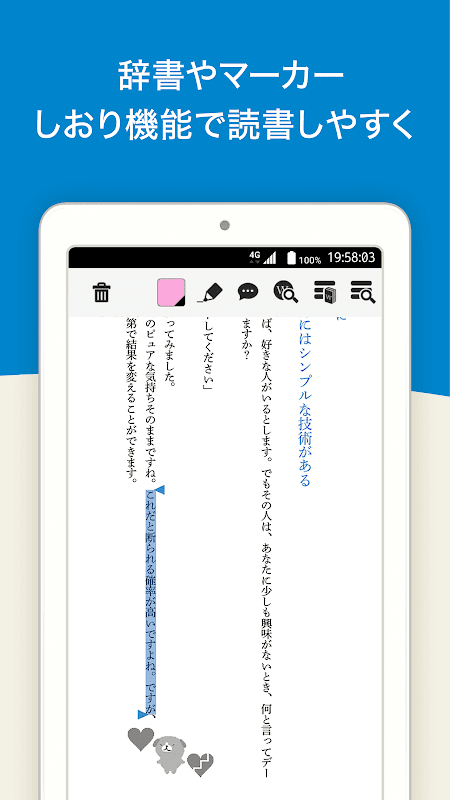 ・Puoi ingrandire liberamente il testo, cambiare il colore di sfondo e visualizzare il testo in formato verticale/orizzontale o in colonne.
