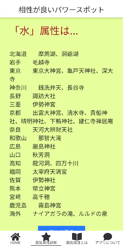 繭気属性診断、その属性と相性の良いパワースポット 1.0.9