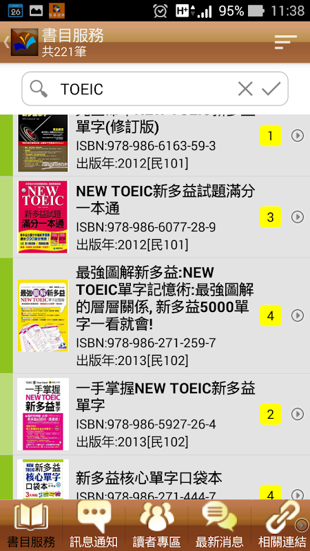 美和科大行動圖書館,提供本校教職員生利用智慧型手機輕鬆地取得圖書館相關資訊。含查詢館藏、教師指定參考書等,並提供個人專區查看個人借閱狀況、續借/預約圖書等服務。