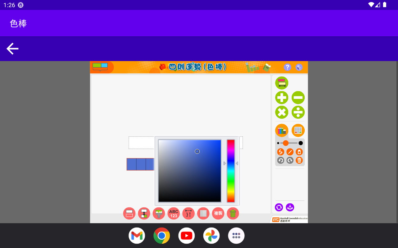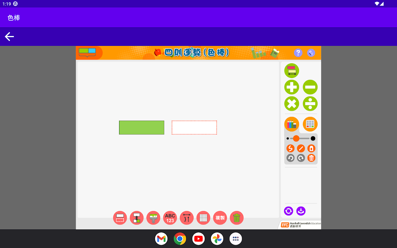"Four Arithmetic Operations (Color Stick)" is an electronic problem-solving tool that integrates self-study and teaching. Students can use this app to preview and self-study before class, and they can also review and understand the meaning of addition, subtraction, multiplication and division word problems after class. Teachers can also use the color sticks in this app in class. Through different mathematical models, text is visualized to help students understand and master the problem-solving methods of applied problems.