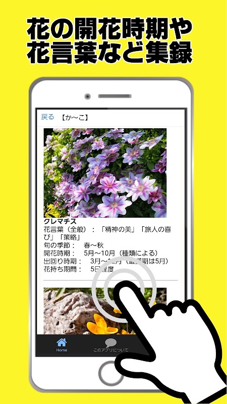 【無料】花図鑑アプリです。写真と花の解説付き。癒しとして落語、演歌や歌謡曲もいいですが、きれいなものを見てストレス発散しましょう。高齢者向けのアプリです。