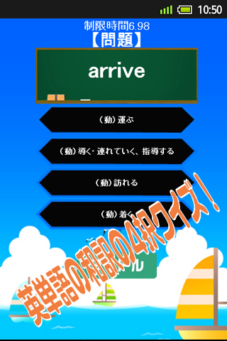 英単語の意味を4択の中から正しい和訳を選択するゲームです。