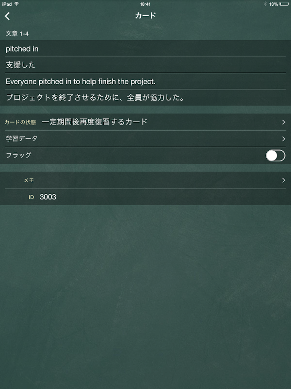 このフラッシュカード・アプリは、日本人学習者が、一般英語を習得するためのアプリで、英語で最も頻繁に使われている連語をフレーズ として学ぶことができます。このアプリには、英語総合教育アプリ「英語マスター1万」の中から厳選された3,000のフレーズが含まれております。これら3000のフレーズは、含まれている単語の大半が英語と異なる表現を使って言い表すもので、それぞれのフレーズには例文が添えられているほか、フレーズと例文それぞれに日本語訳も添えられています。