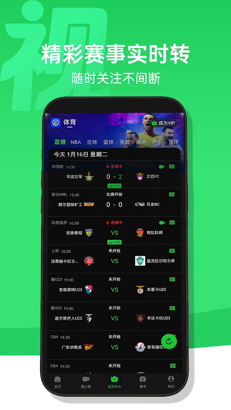 **Eventi sportivi dal vivo:** gli utenti possono guardare le ultime trasmissioni in diretta di famosi eventi di basket e calcio su "Ying Video" e non perdere mai un secondo degli eventi emozionanti.