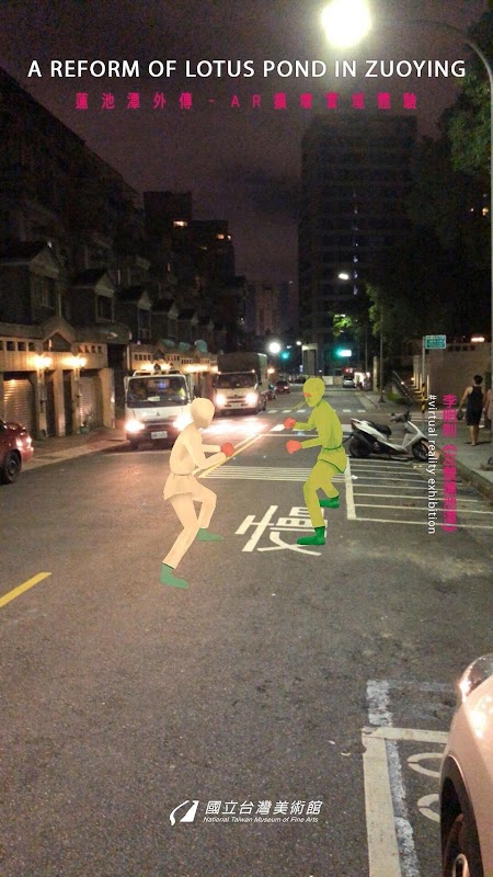 結合當代繪畫作品─李明則〈左營蓮池潭〉開發本APP,可於APP內選擇喜愛畫中角色或景點,經由手機攝影機將物件置放於實景之中,與其互動拍照,增添欣賞畫作的趣味。